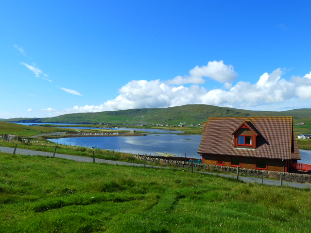 Heading north from Sumburgh, turn right in Cunningsburgh at the 'Gord' sign. Follow the road for about half a mile, take the next left and the property is prominently located in an elevated position overlooking the Aithsvoe Marina.