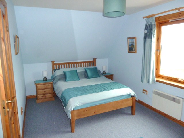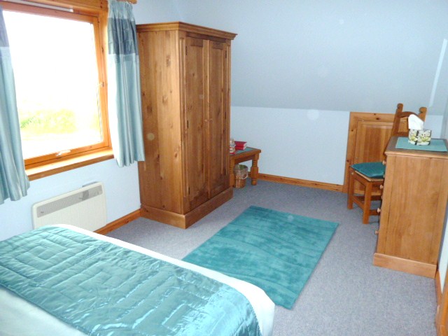 Luxurious double bedroom with ample space for a cot/z-bed and sea views over Aithsvoe and the village of Cunningsburgh. Recently refurnished with solid wood furniture.