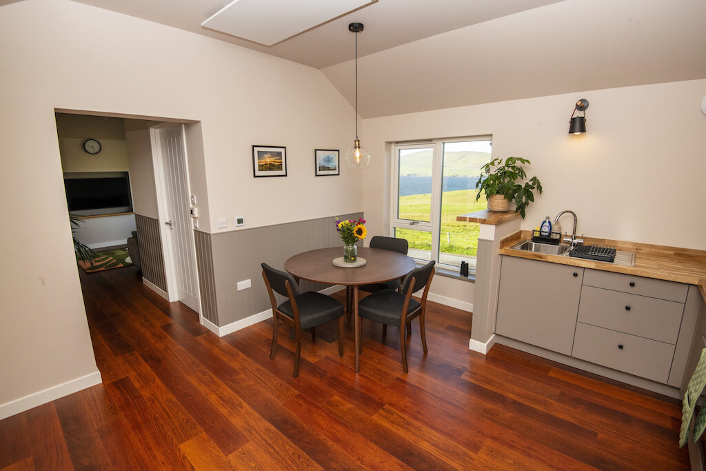 Seascape is perfect for a Shetland getaway, comfortably accommodating up to 2 guests. Accommodation consists of open plan living room, kitchen, and dining area which boasts stunning sea-views. The bedroom features a luxurious king-size bed. Located in the village of Sandwick, Seascape is ideally situated midway between Lerwick and Sumburgh, making it a great base for exploring Shetland. Local amenities, including the local public swimming pool complex just 100m away and a local Bakery and convenience store only a short walk away. Enjoy breath-taking vistas over Hoswick Bay and Sumburgh Head, Whether you're visiting for business or pleasure, Seascape promises a warm family welcome and a true home away from home.