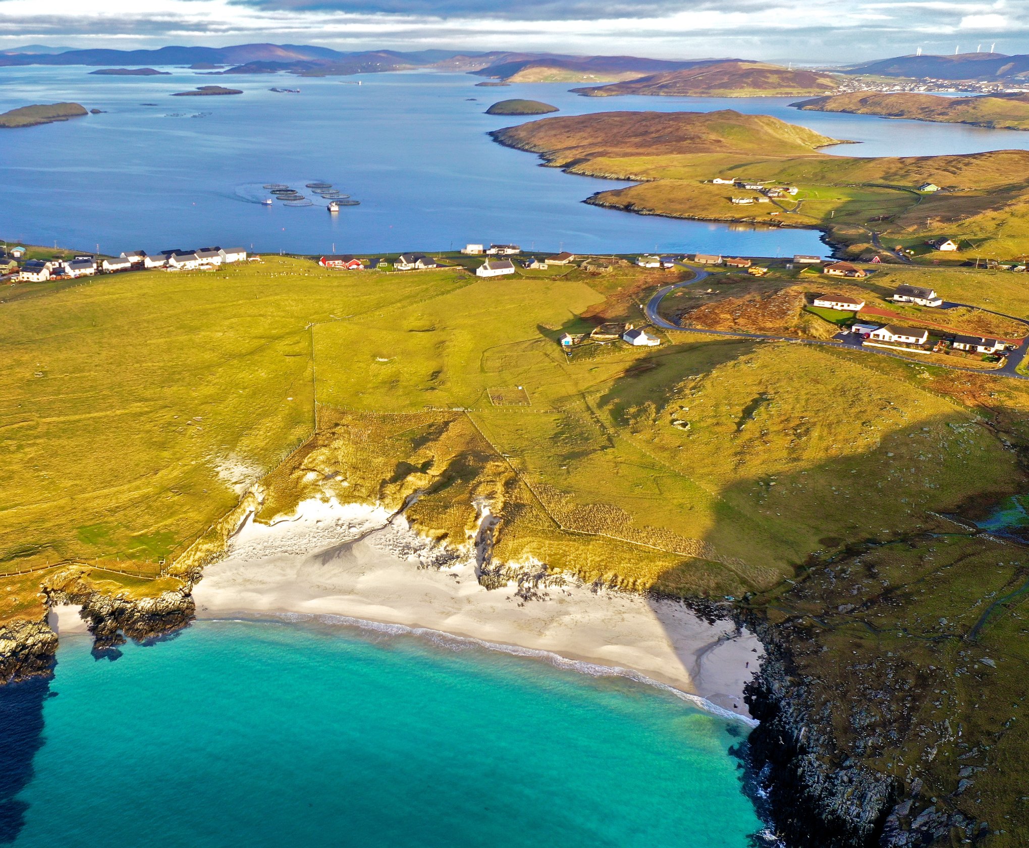 “Da Haaf” enjoys a central mainland location. It has open sea views towards the island of Foula and is situated right next to Meal beach, Burra, approximately 5 minutes drive from Scalloway and 15 minutes from Lerwick. The local shop in Hamnavoe is within walking distance. Coastal walks and stunning scenery are right on the doorstep.