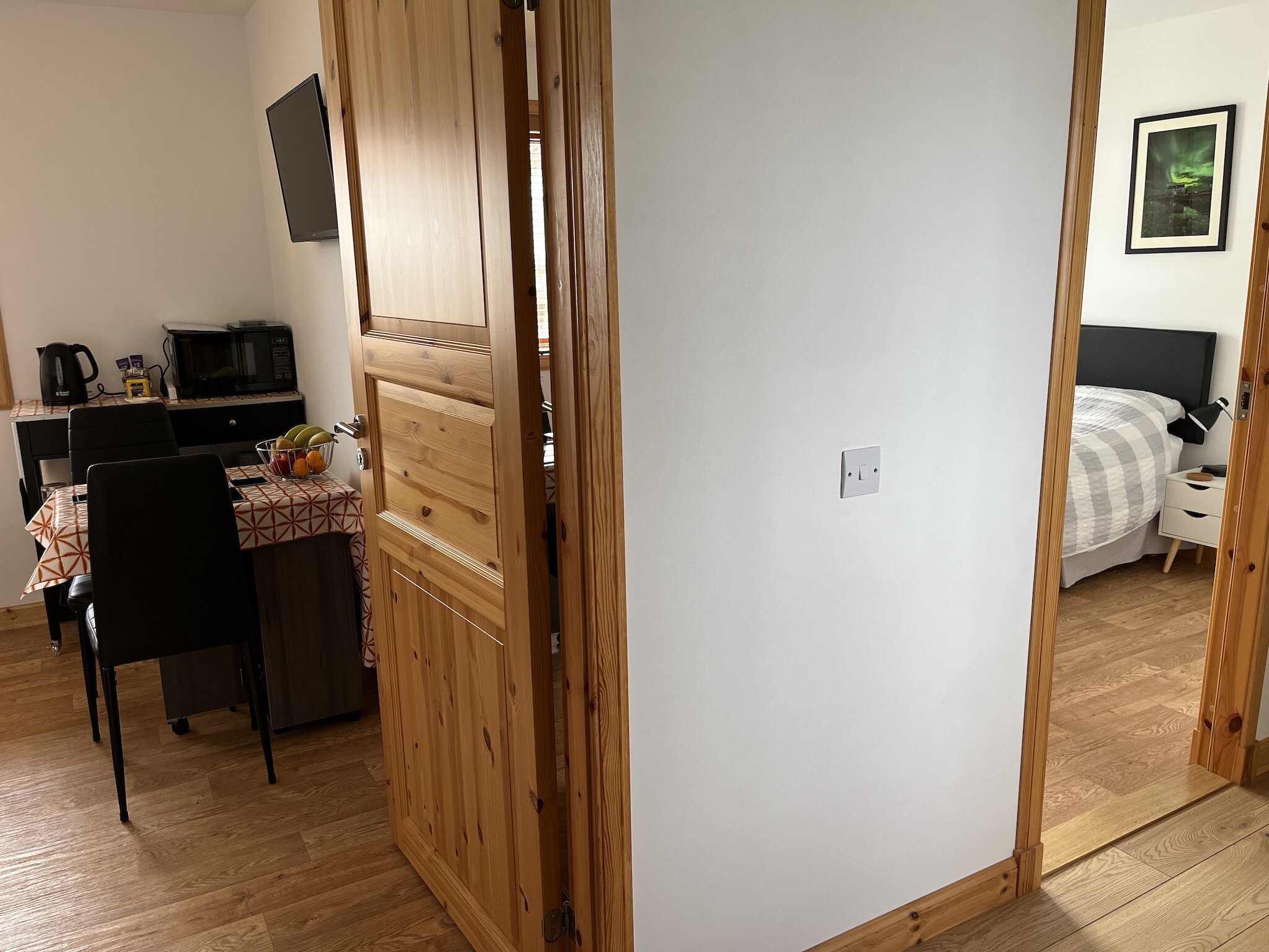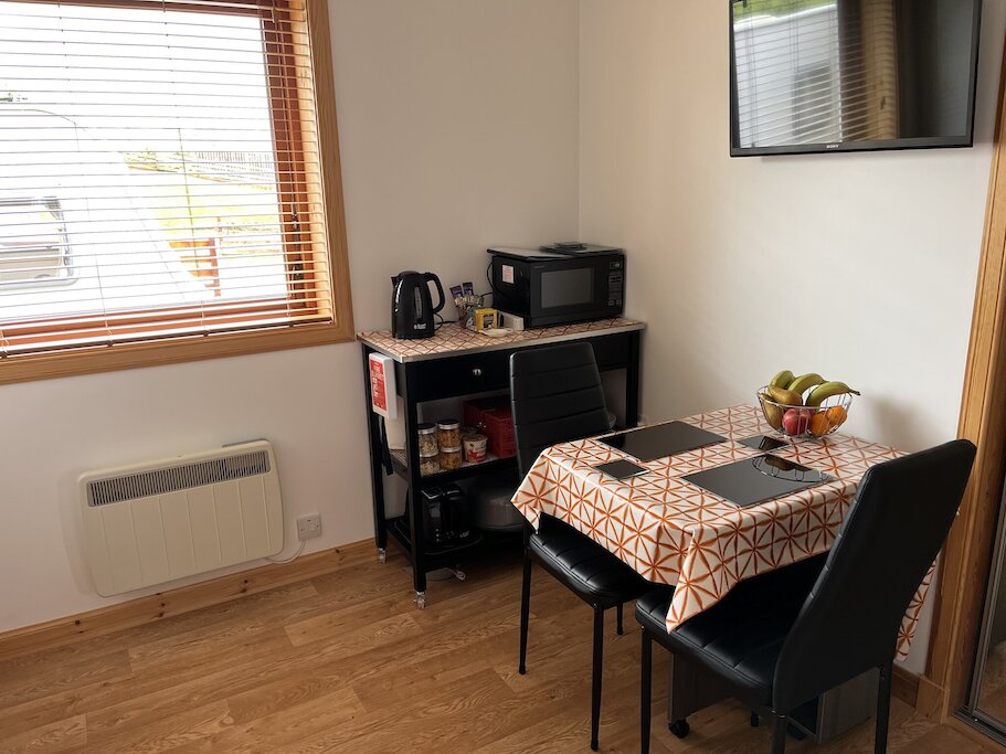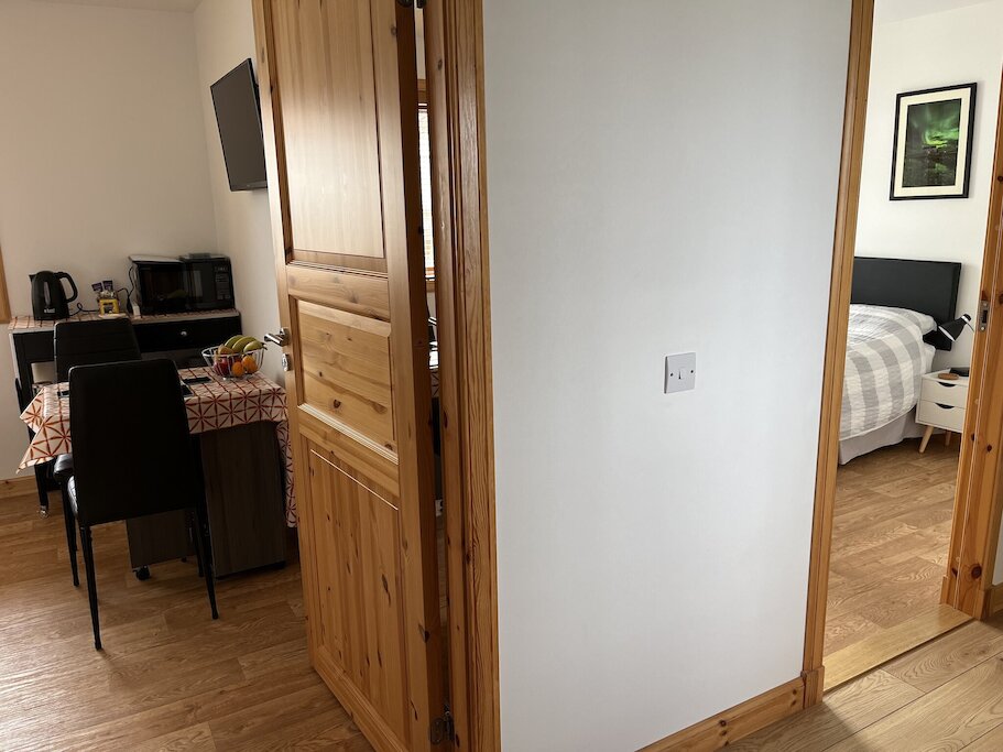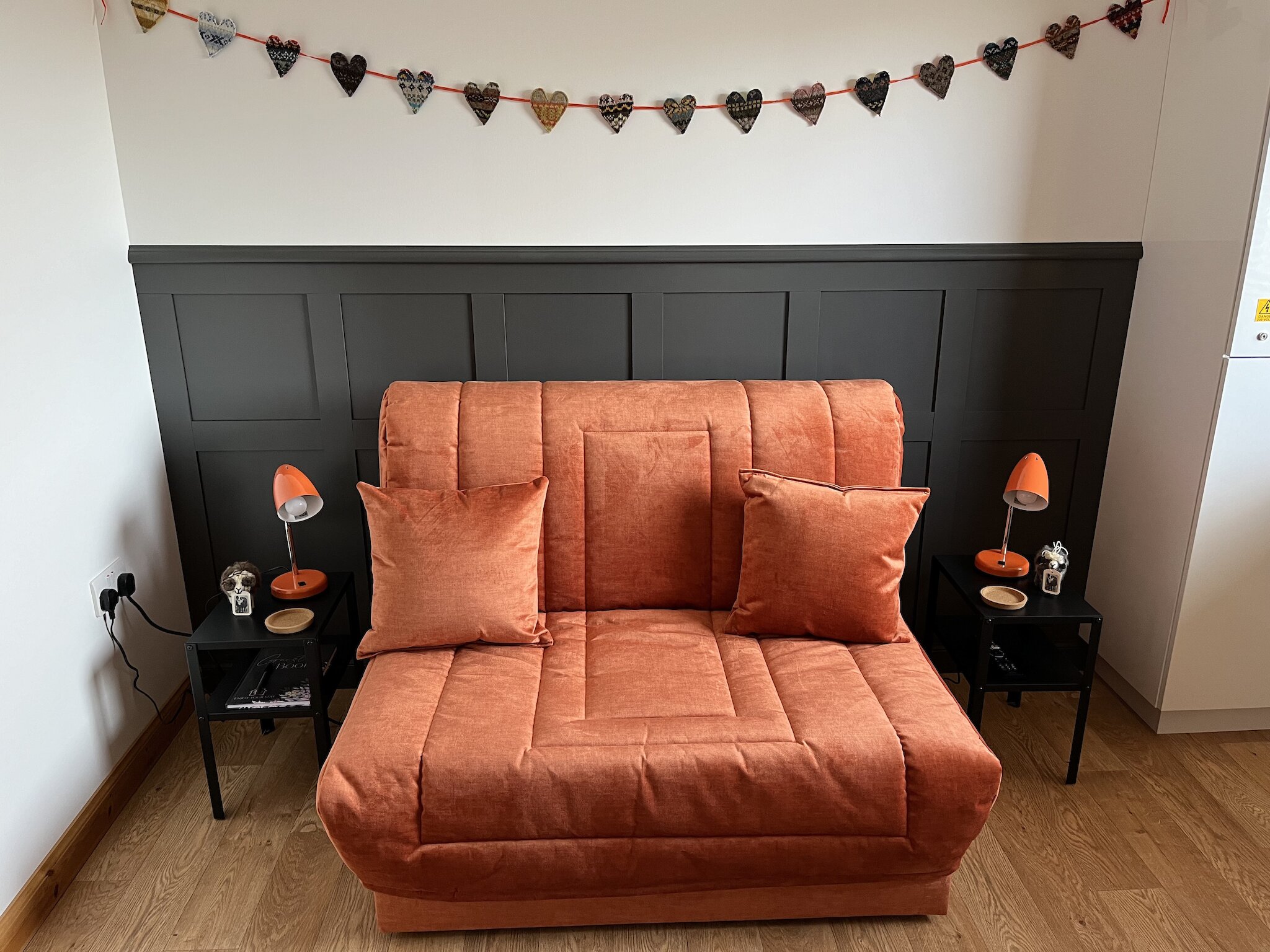 The accommodation is ideally suited to 2 guests, however, there is a sofa bed in the living room which can sleep 2 extra guests on the same booking. (Sofa bed opens to a small double bed and requires to be set up nightly.)