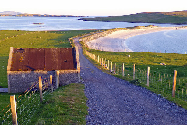 If you are arriving from Sumburgh airport turn left at the junction, signposted Scalloway and follow the directions (above) from Scalloway to Burra.