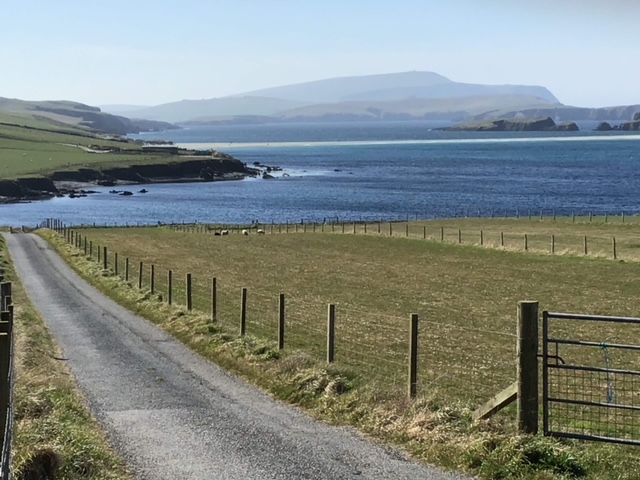 Cosy chalet with beautiful views overlooking St Ninian’s Isle and beach.