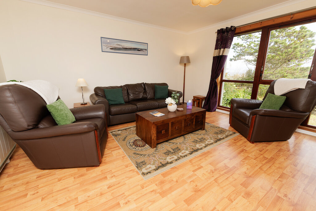 The home offers sweeping views of the North Isles, a spacious private garden (front and back), and a comfortable lounge where you can unwind after a day of adventure. The well-equipped kitchen with dining space makes family meals easy, while the bright, open-plan living area is filled with natural light and warmth. Everything is on one level, making it fully accessible and easy to navigate—ideal for guests of all ages. You're just a short walk to the local shop, a quick drive to Lerwick town centre, and a stone’s throw from scenic walks and sandy beaches.