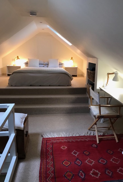 Bedroom 2 with king-size platform bed, writing desk, space to sit /read. Hairdryer. All bedlinen is Egyptian cotton and the duvets, feather and down.