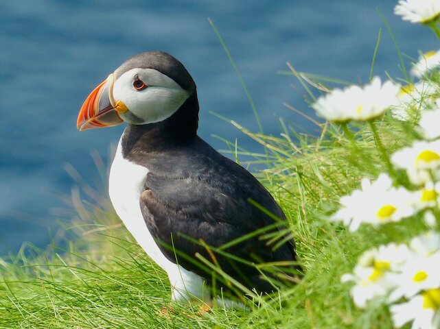The cliffs, which rise to 170 metres in places, are home to many seabirds with thousands of gannets nesting on Hermaness in the north, alongside fulmars, guillemots, razorbills, shags, kittiwakes and of course the colourful puffins. Hermaness overlooks a rocky outcrop on which Britain’s most northerly lighthouse was built in the 19th century – Muckle Flugga, designed by Robert Louis Stevenson’s uncle and visited by the author.