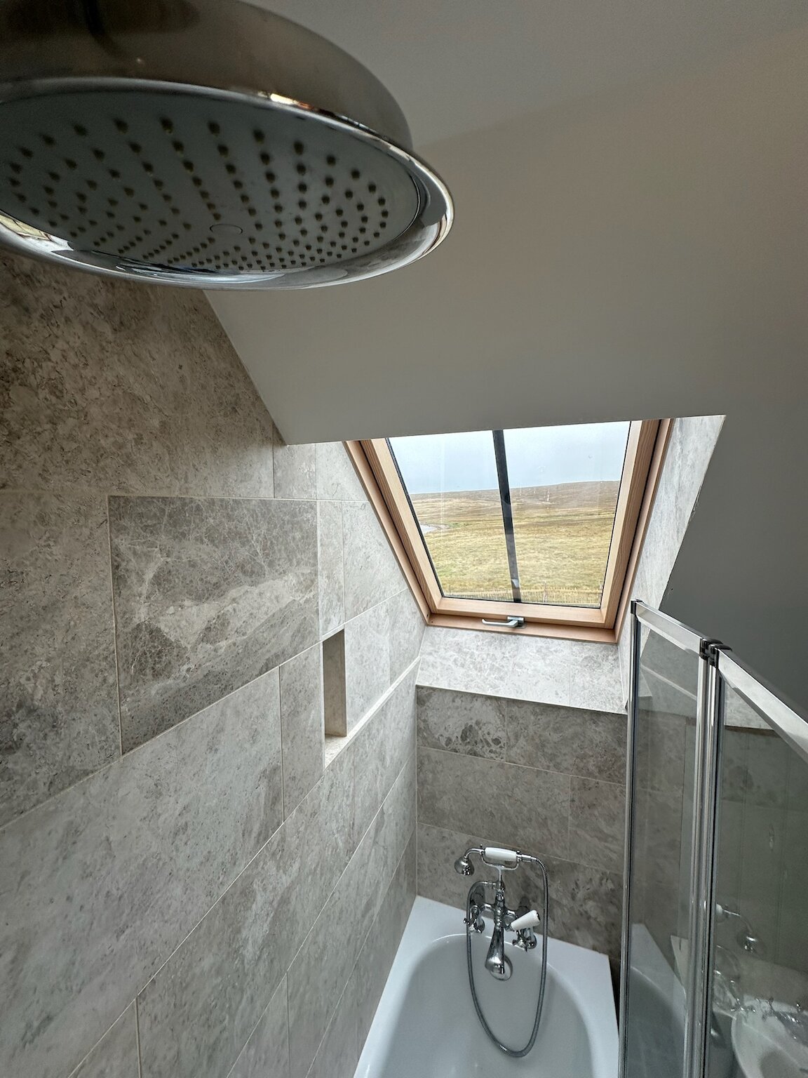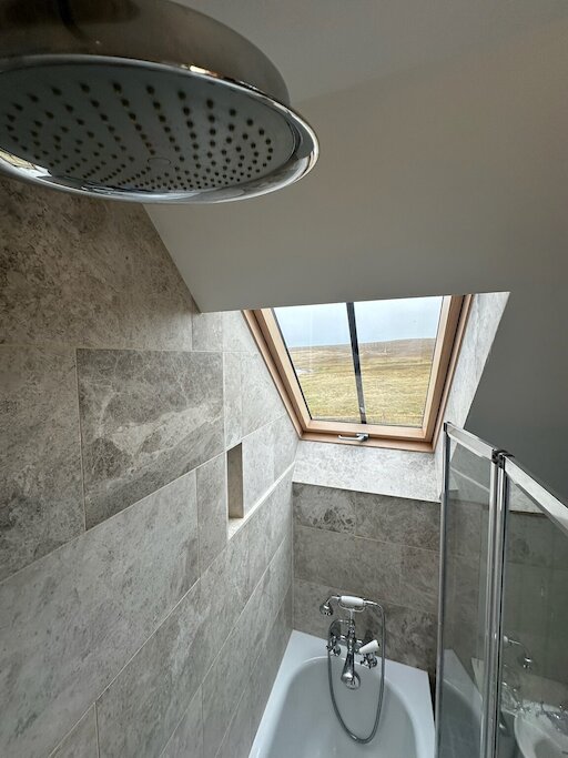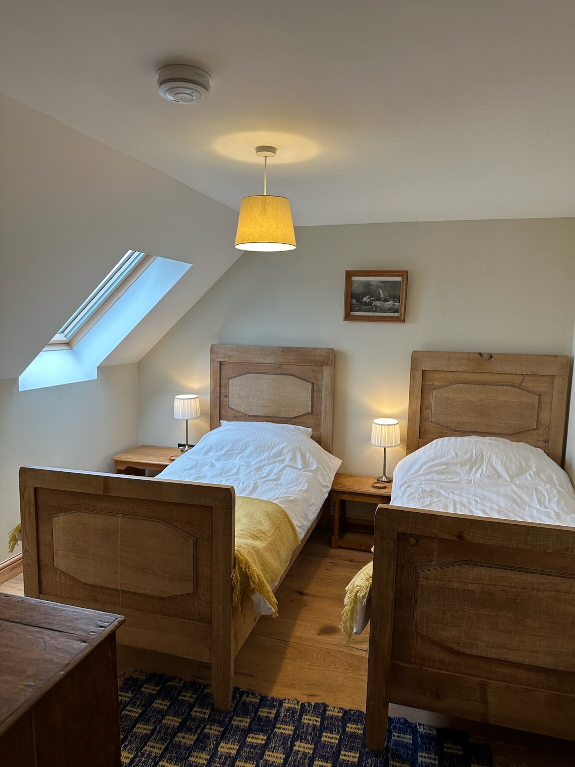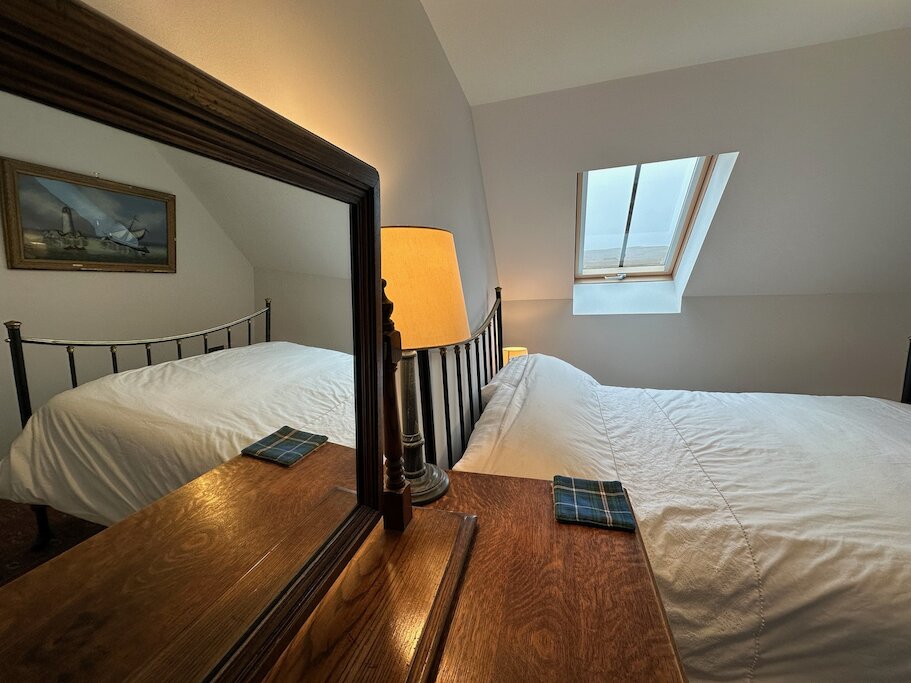The Old Kirk retains many of its original features and boasts sublime views over the sea and moorland on either side. You can walk out the door and explore the wonderful westside coastline right from the property. There is a galleried sitting room which overlooks the original pulpit providing the perfect place to unwind after a day exploring. On the floor below we have a small snooker table, organ and table football. The Kitchen is well equipped and the large dining table creates a hub for after dinner drinks and cards/board games. There are three double bedrooms and one twin room within the Old Kirk. There is also a utility room and plenty of parking.