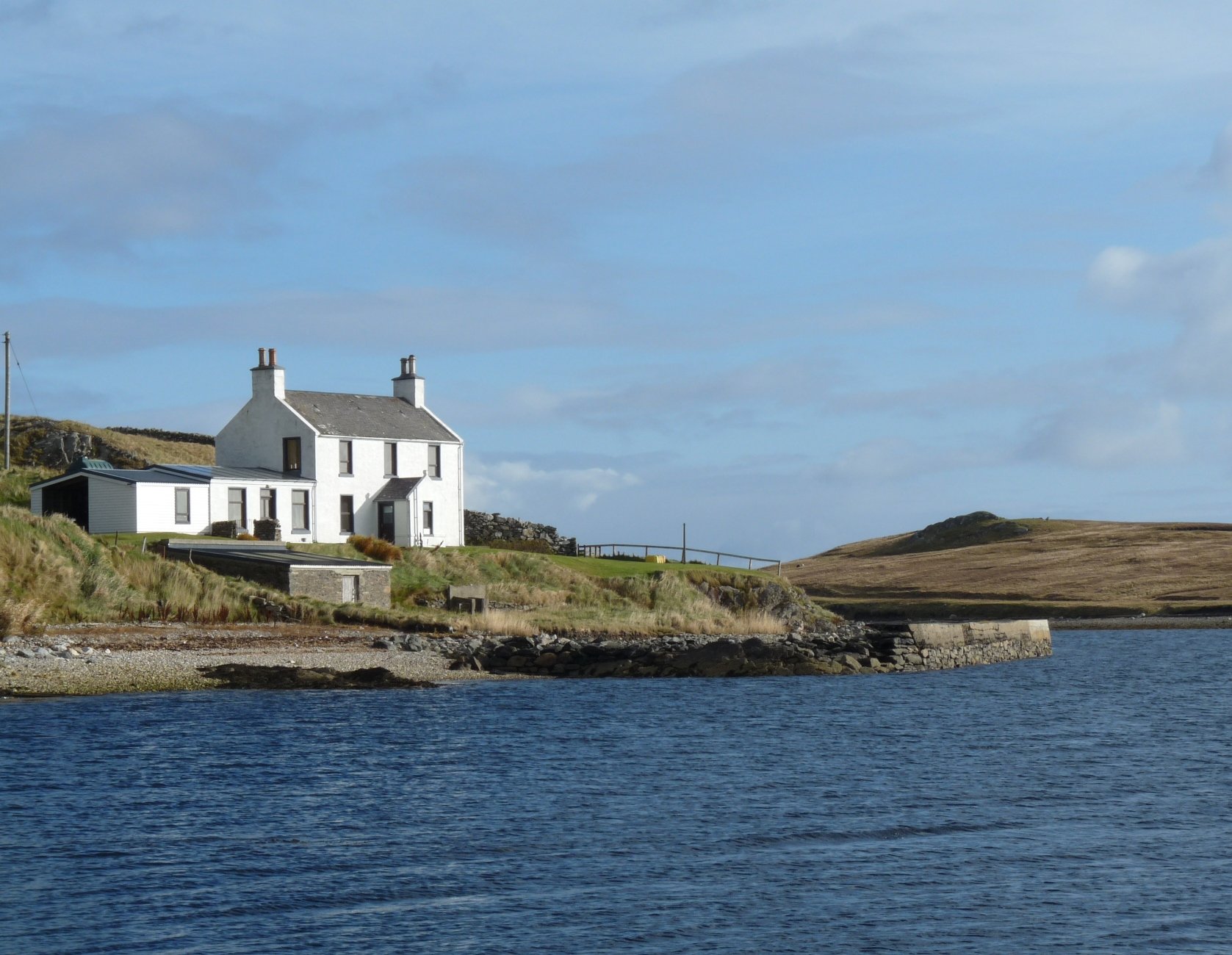 Overby is a traditional Shetland house, tastefully and sympathetically restored. By the village of Burravoe, on the Island of Yell, Overby is set in its own well-kept grounds, leading down in front of the house to a tidal pool, private jetty wall and pebble beach.