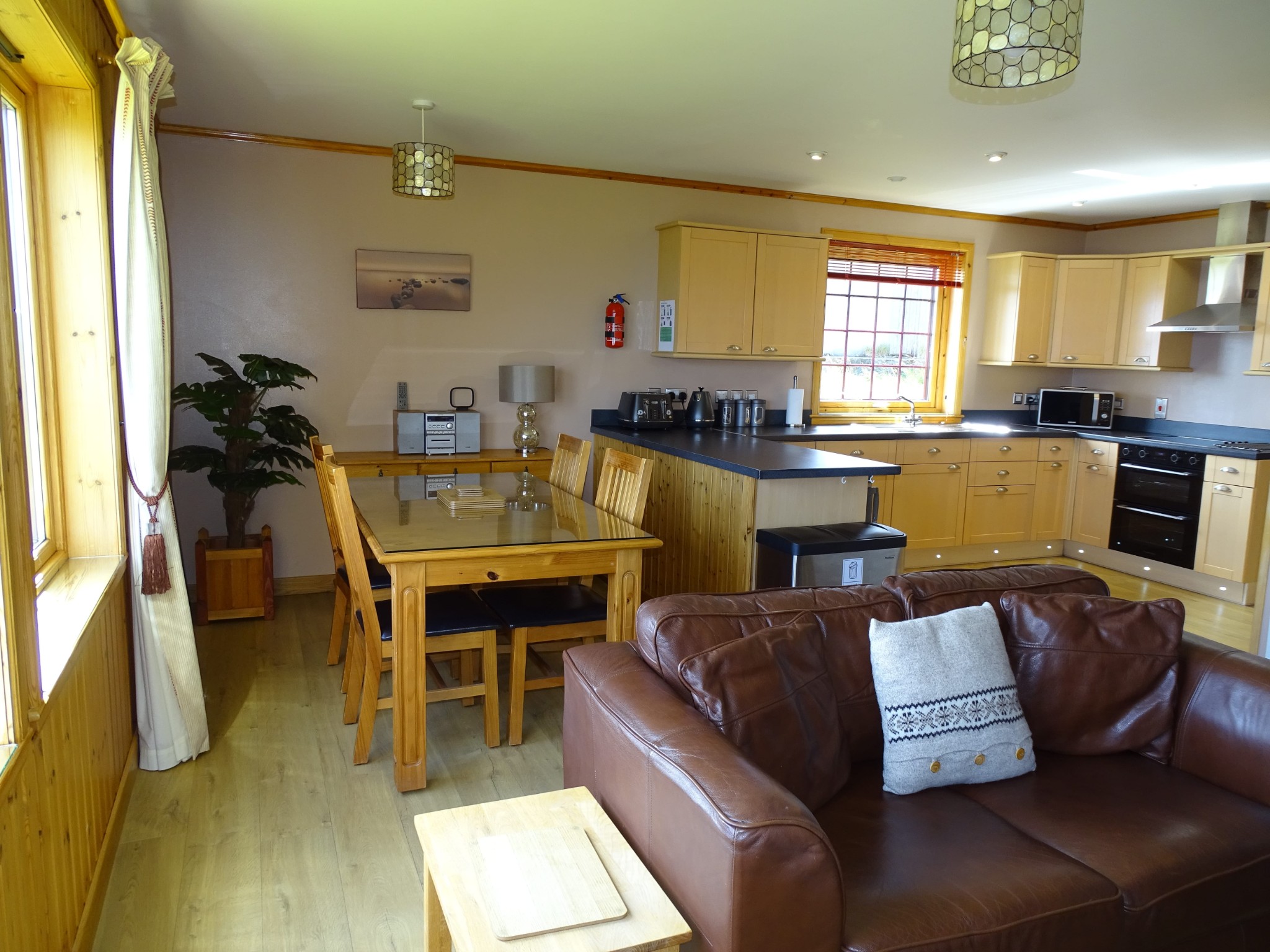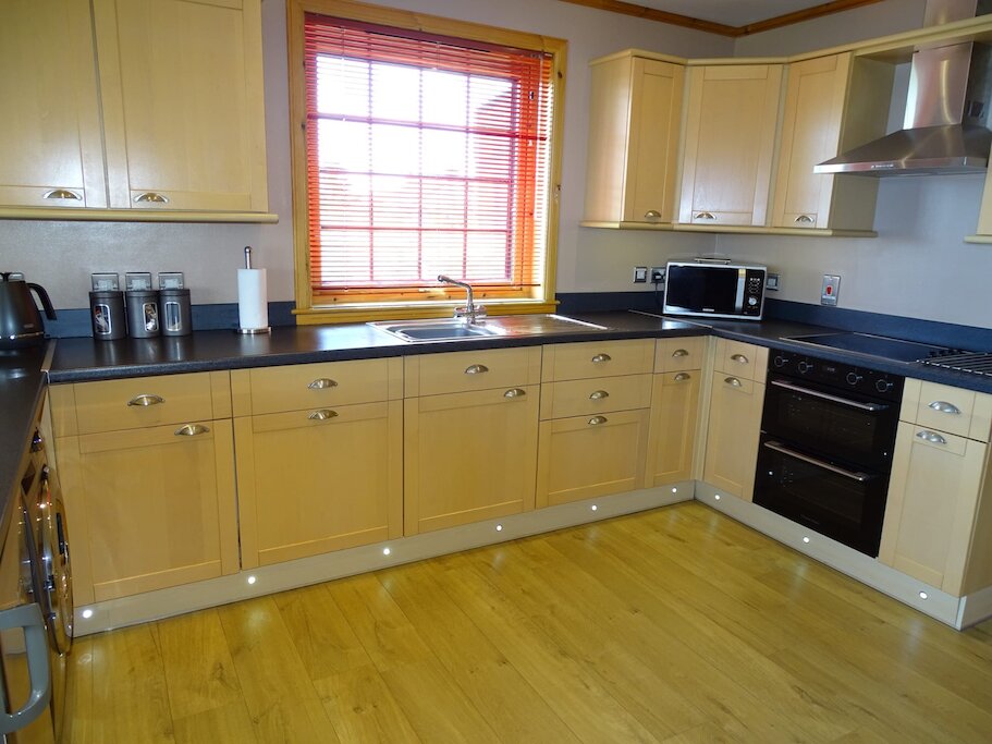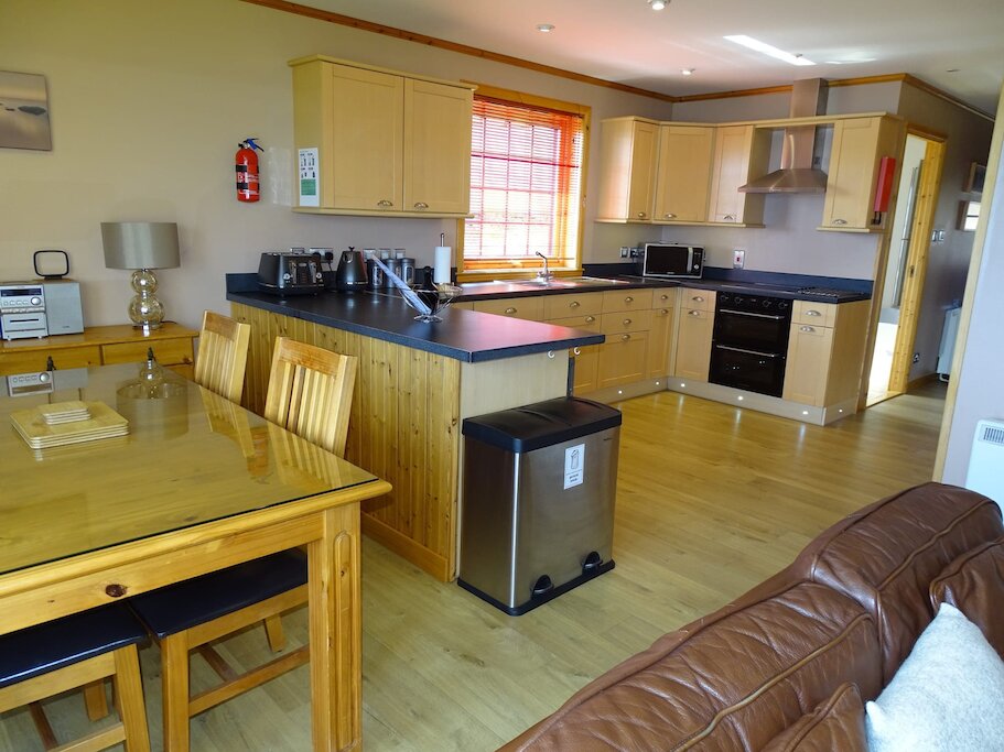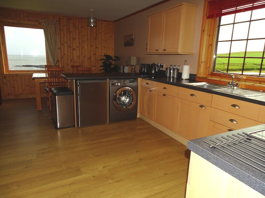Oxna has one kingsize bedroom and one single bedroom, wool carpets, quality bedlinen and TVs. Oxna has a spacious open-plan modern living/dining room with large sofas, Freeview LED TV, DVD player and HiFi system. There are stunning sea views from the living and dining room windows. The large fully fitted kitchen comes complete with a fully-integrated dishwasher, washing-machine, oven, fridge and microwave as well as a large selection of crockery, cutlery and cooking utensils. The luxury bathroom has a curved bath and an overhead mains powered shower and a good supply of quality soft white towels and Shetland Soap Company soaps.
