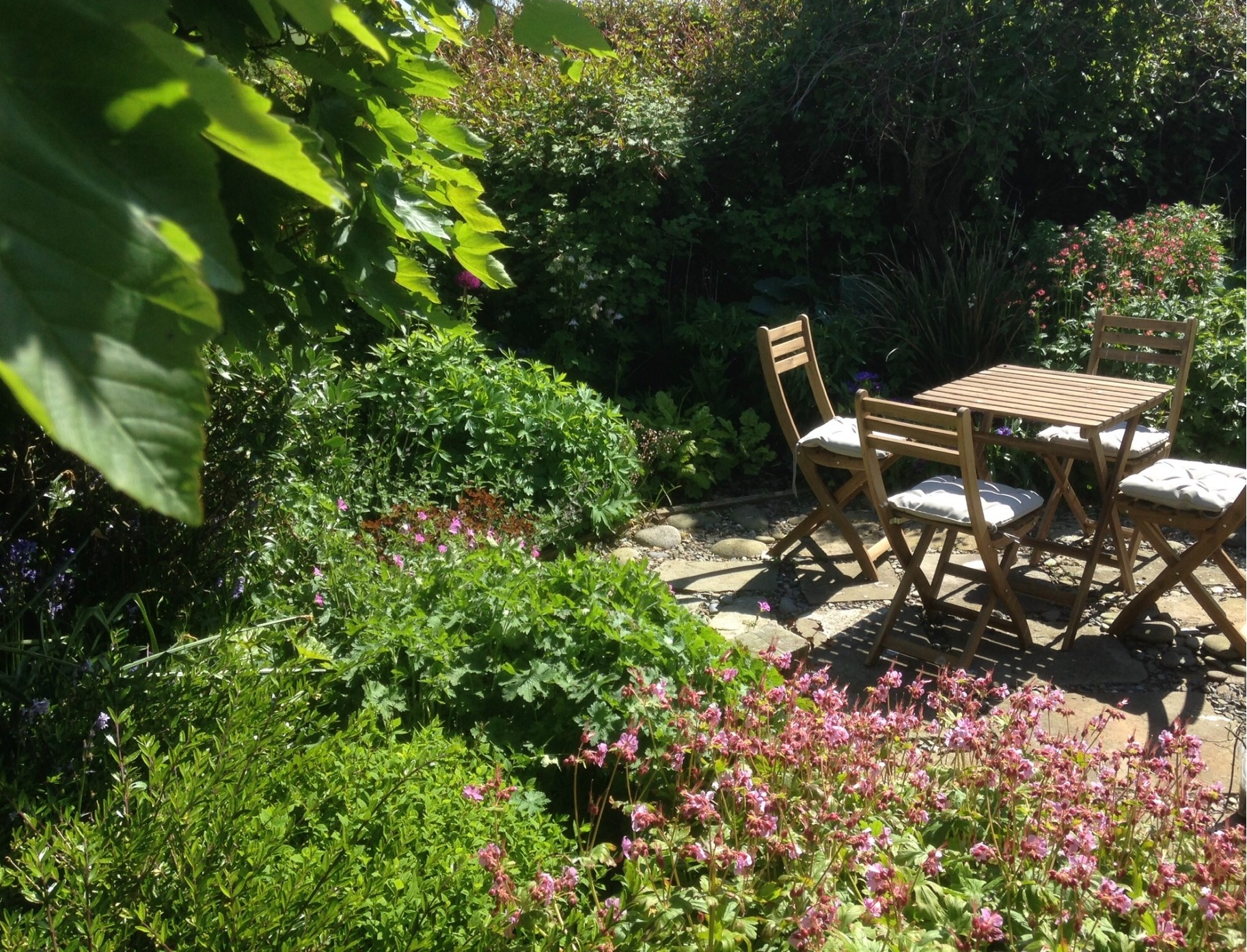 OUTSIDE. Chill out or eat out in one of the various outside seating options, in sun or shade in the sheltered flower filled garden, designed for birds and bees. There’s free private parking adjacent to the house at the top on the short drive. Unfortunately due to the age of the property, its steps, stairs and changing levels, the house might not be suitable for guest with significant mobility issues.